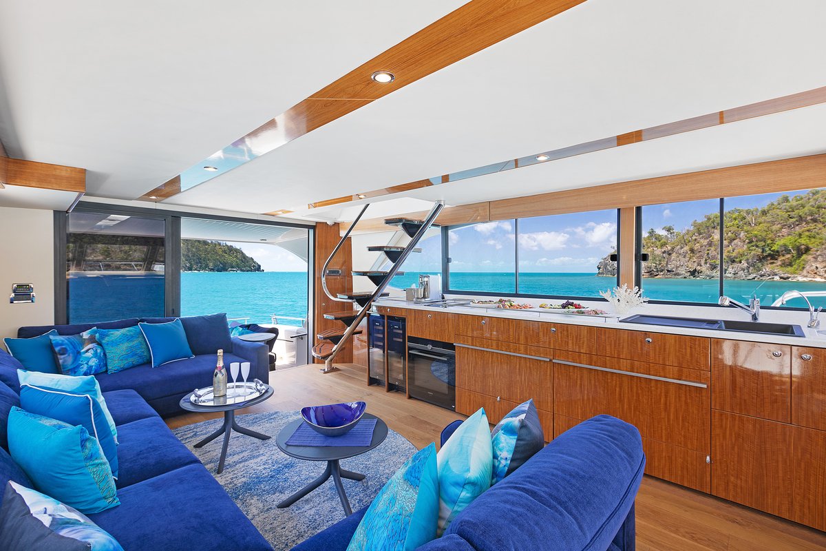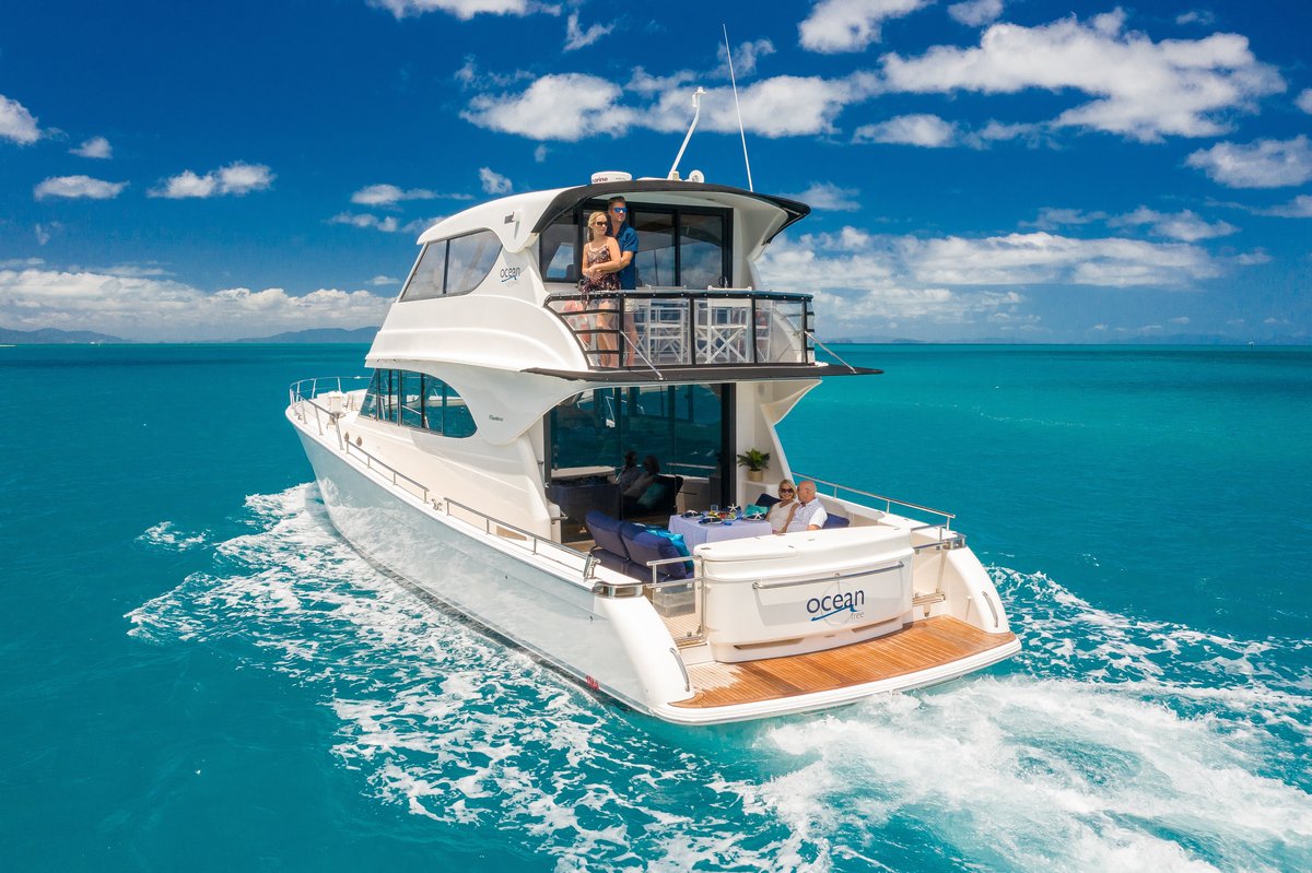 Ocean Free is a 20m Australian-built Maritimo luxury motor yacht, designed for elegance, comfort, and performance. With a spacious open-plan layout, expansive upper and lower deck spaces, and refined styling, it accommodates up to 22 guests—perfect for an unforgettable Whitsundays experience. Engineered for sophisticated cruising, Ocean Free delivers both power and precision. Featuring a teppanyaki BBQ area, heated outdoor shower, sunbathing space on the bow, and three levels of air-conditioned indoor luxury, this yacht is designed for seamless relaxation and indulgence.